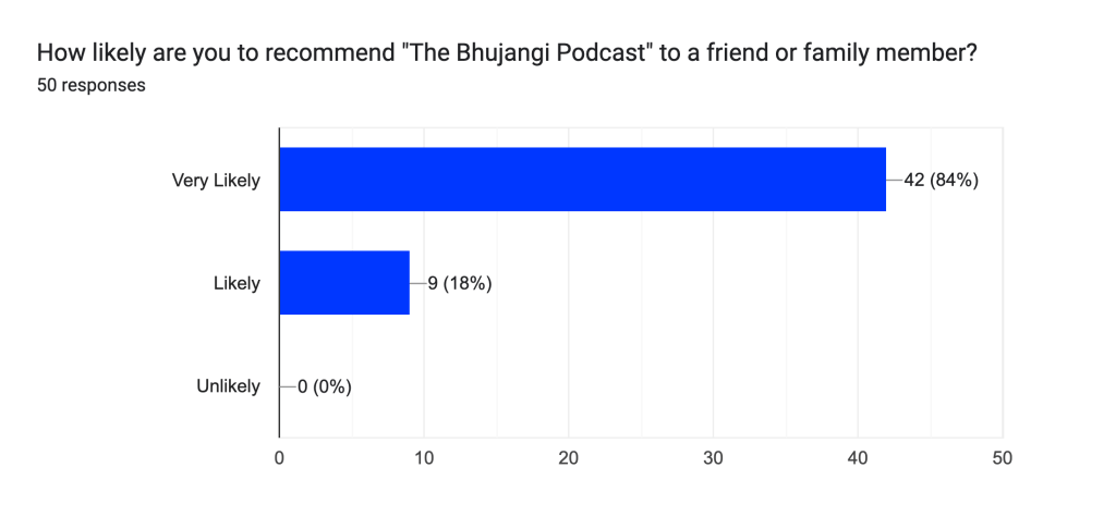 The feedback collected through Google Forms provides evidence that The Bhujangi Podcast has been highly successful in achieving its primary objectives of creating culturally rich content that resonates with the global Sikh diaspora.