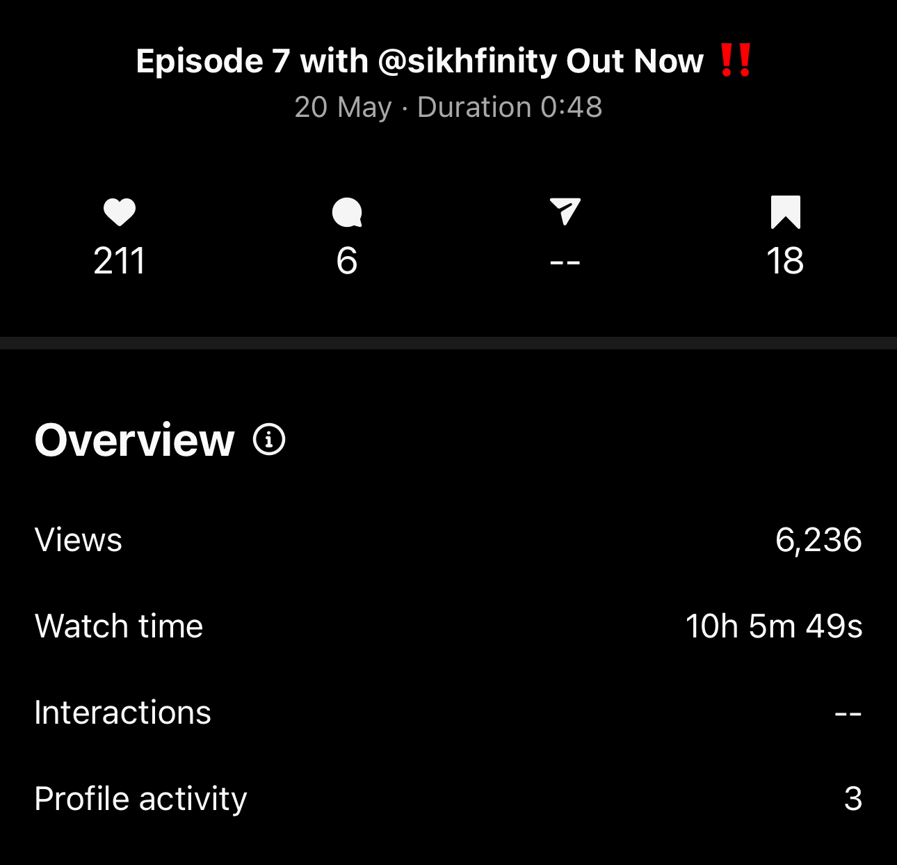 The market research I conducted as social media manager for Khalsa Panth UK provided valuable insights that informed my content strategy. With 81% of my audience expressing interest in discussion/podcast style content, and equal engagement from both 15-20 and 21-30 age groups (37% each), I was able to tailor my content specifically to these demographics’ preferences. My multi-platform approach using Instagram and YouTube, with an emphasis on short-form content to drive traffic to the full length episodes, created an effective content ecosystem that maximised visibility and engagement.