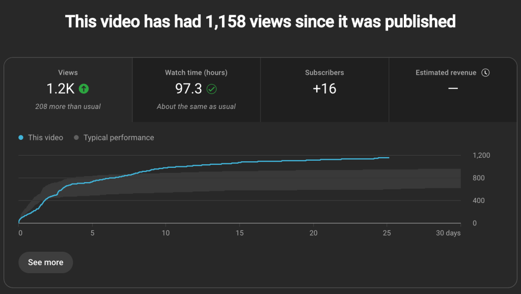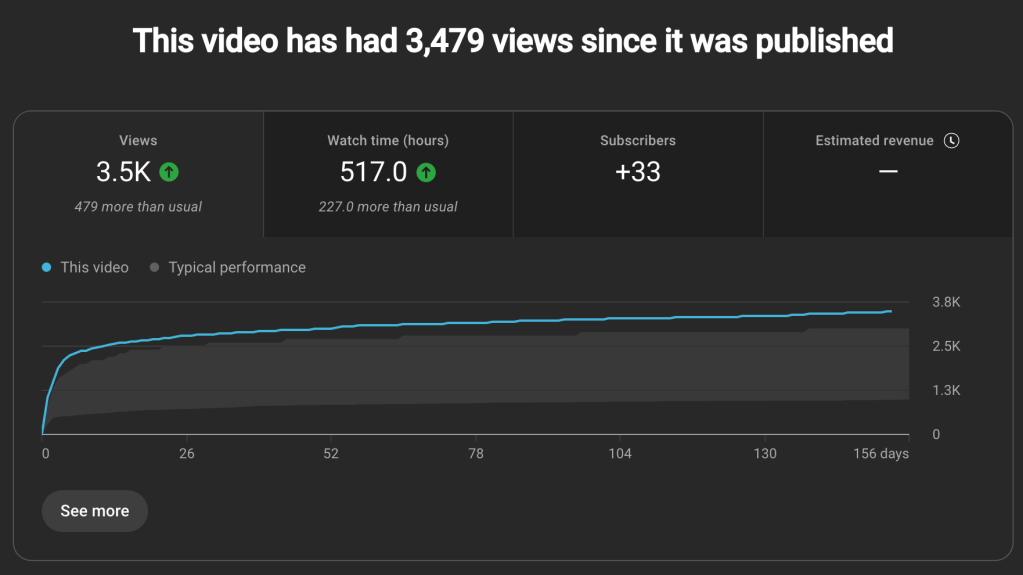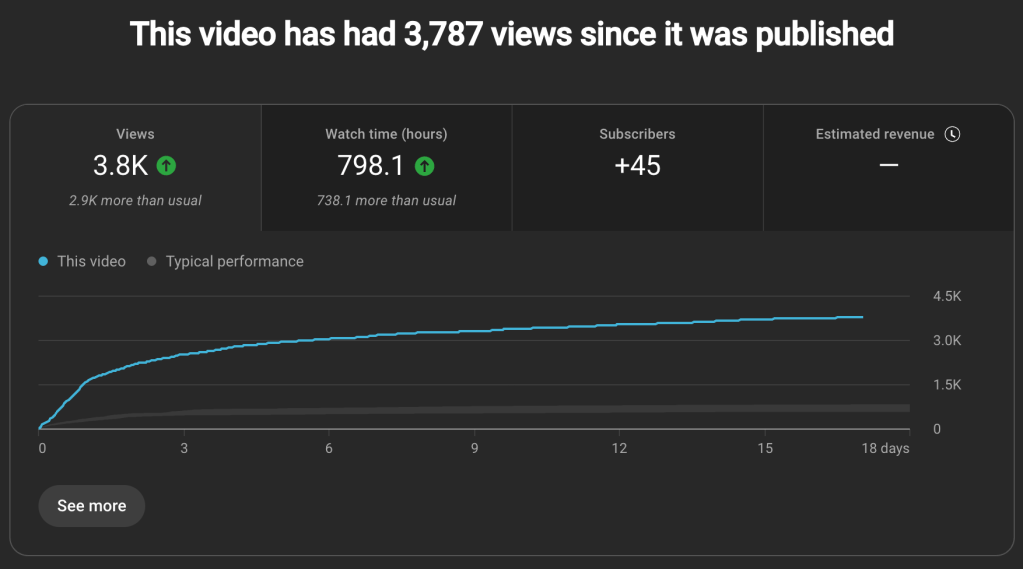 Episode 5 performed very well, exceeding over 3.8k views and over 750 hours of watch time, I believe this podcast episode was a success, due to the performance being so high even though the podcast has a very small and niche audience.