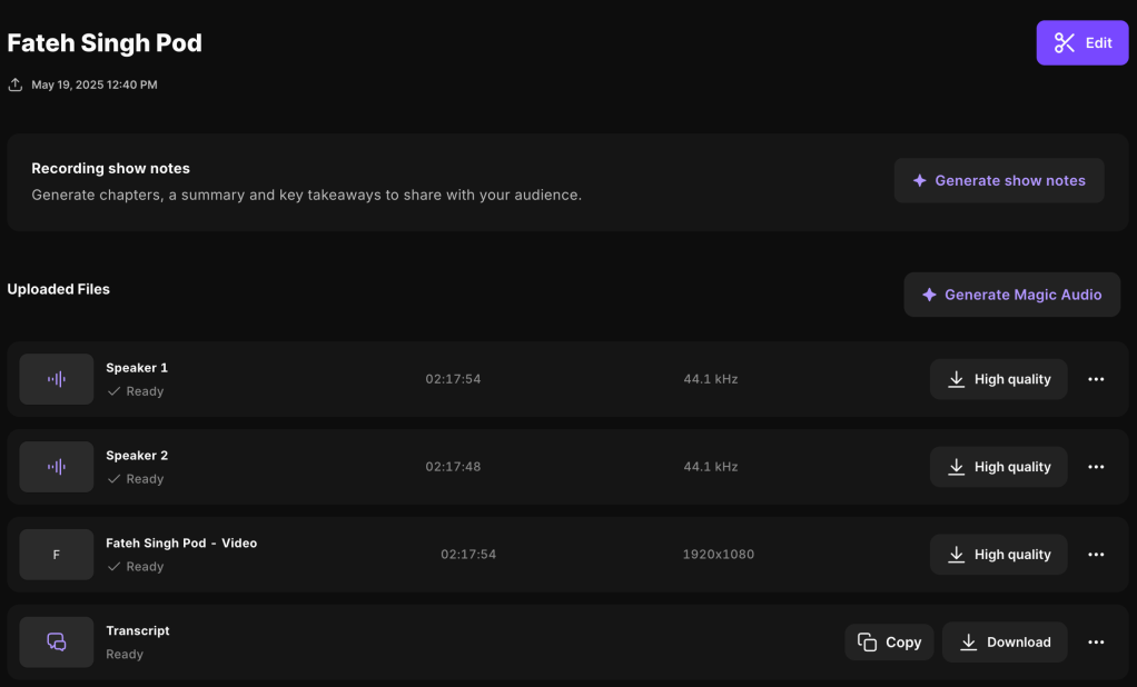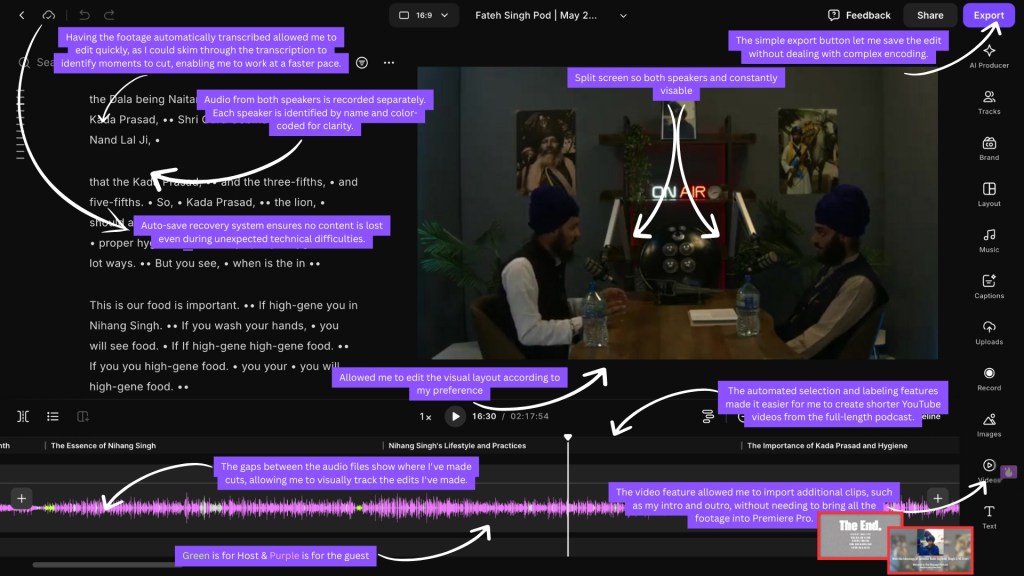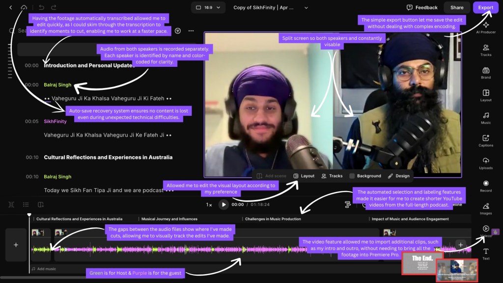 As a result, I made the decision to shift to Riverside Studio for editing. Having already recorded and edited Episode 6 on the platform, I was confident in its reliability and familiar with its built-in tools. Riverside allowed me to maintain a fast-paced workflow without sacrificing quality.