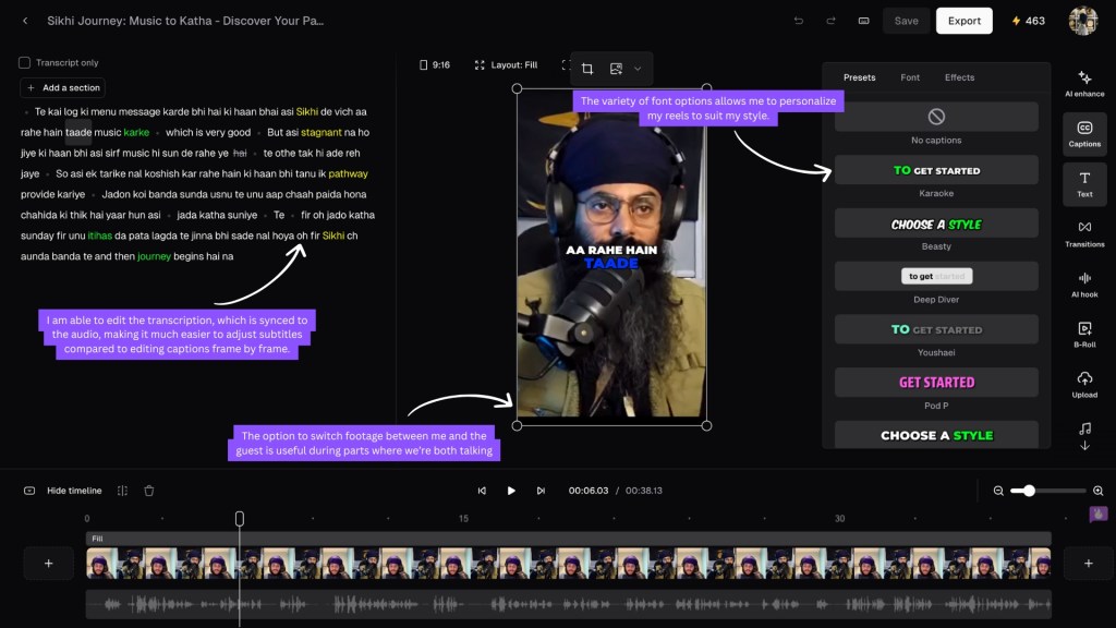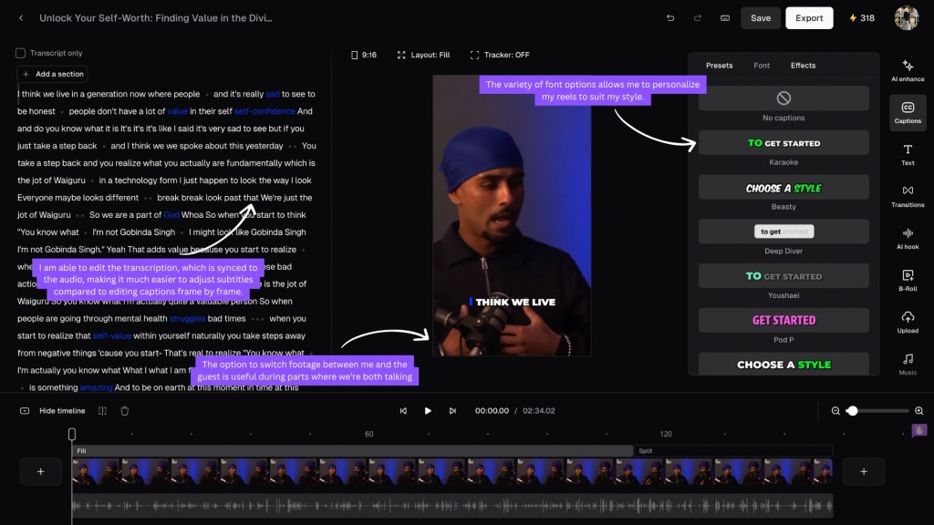 By analysing speech patterns, tone, and engagement cues, OpusPro selects clips that are most likely to perform well on social media, saving me time while boosting the potential reach and impact of each reel.