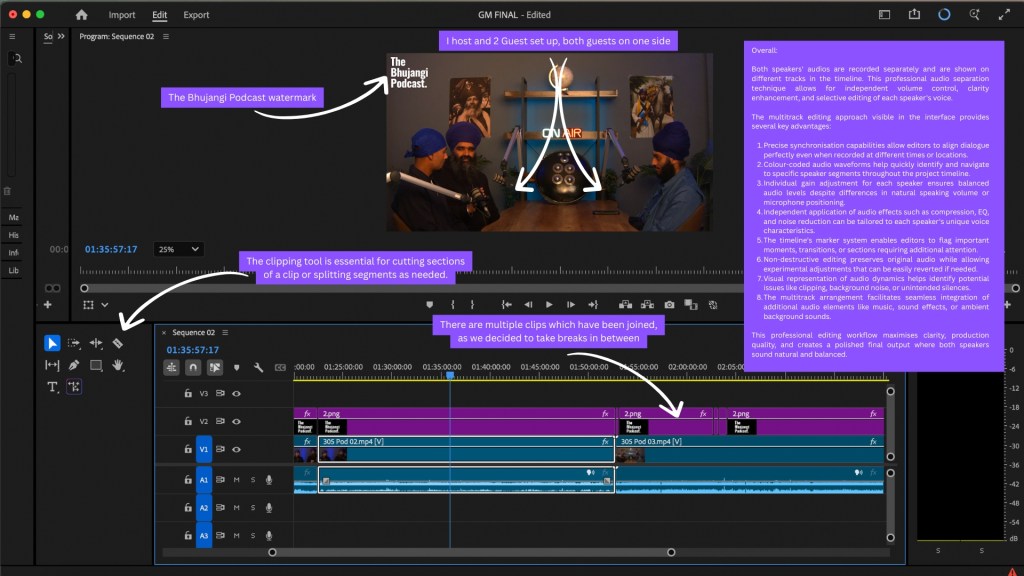 When it came to editing the podcast, the overall process was relatively straightforward and minimal, much like the episodes I recorded last year. Most of the work involved small adjustments — trimming pauses, fine-tuning audio levels, and ensuring smooth transitions — to create a clean and polished final product that matched the standard I had set for the series.
