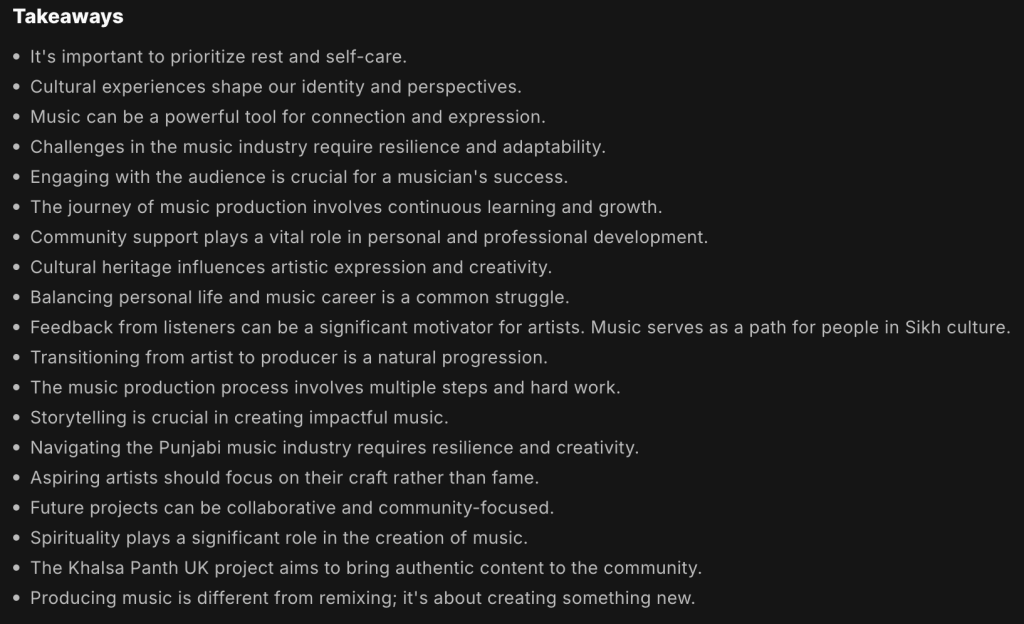 While editing Episode 7, I also chose to utilise the AI-generated summary provided by Riverside Studio and incorporated it into the YouTube video description. This made the description more engaging, informative, and detailed, helping to highlight key moments and themes from the episode. This feature was especially helpful as I was on a very tight schedule. I had just 2–3 days to complete the full production process, including recording the episode, editing the video and audio, creating and scheduling social media content, and writing up the evaluation and written elements of my FMP. Having the Riverside summary saved me valuable time and allowed me to focus on other areas without compromising quality.